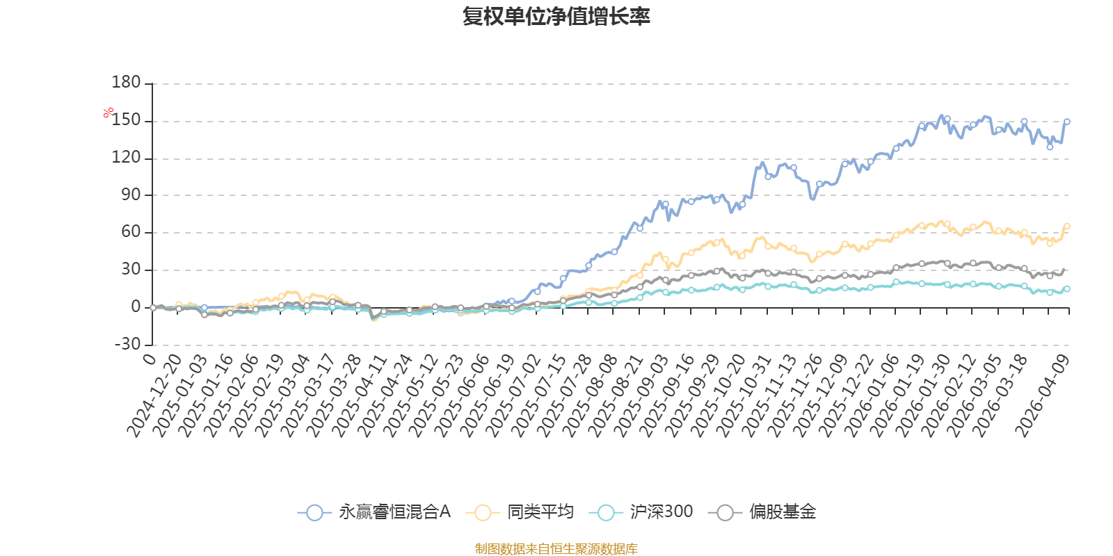 截至4月9日,永赢睿恒混合A近三个月复权单位净值增长率为6.87%,位于同类可比基金62/229;近半年复权单位净值增长率为30.62%,位于同类可比基金15/229;近一年复权单位净值增长率为166.98%,位于同类可比基金15/229。