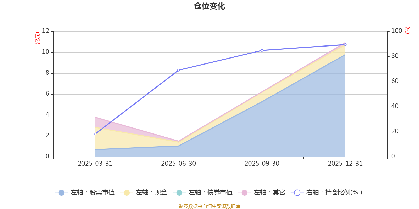 据定期报告数据统计,成立以来平均股票仓位为65.35%,同类平均为86.9%。2025年末基金达到89.44%的最高仓位,2025年一季度末最低,为18.16%。
