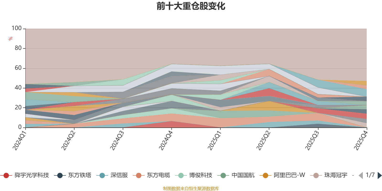 截至2025年末,基金十大重仓股分别是紫光国微、浩洋股份、纳芯微、松原安全、金山办公、珠海冠宇、美团-W、奥特维、合合信息、大连重工。
