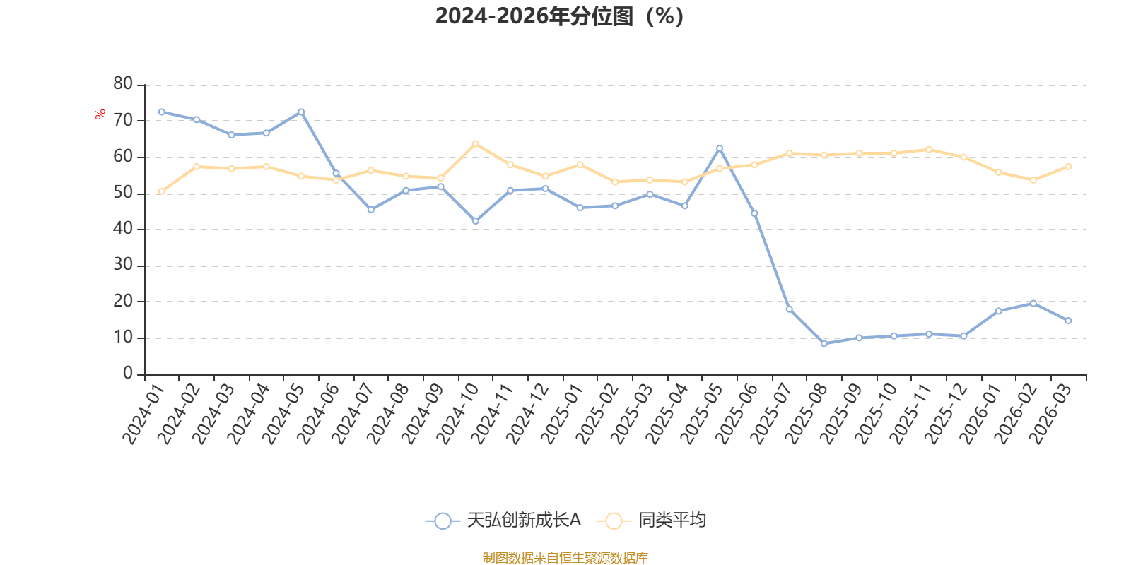 通过所选区间该基金净值增长率分位图,可以观察该基金与同类基金业绩比较情况。图为坐标原点到区间内某时点的净值增长率在同类基金中的分位数。
