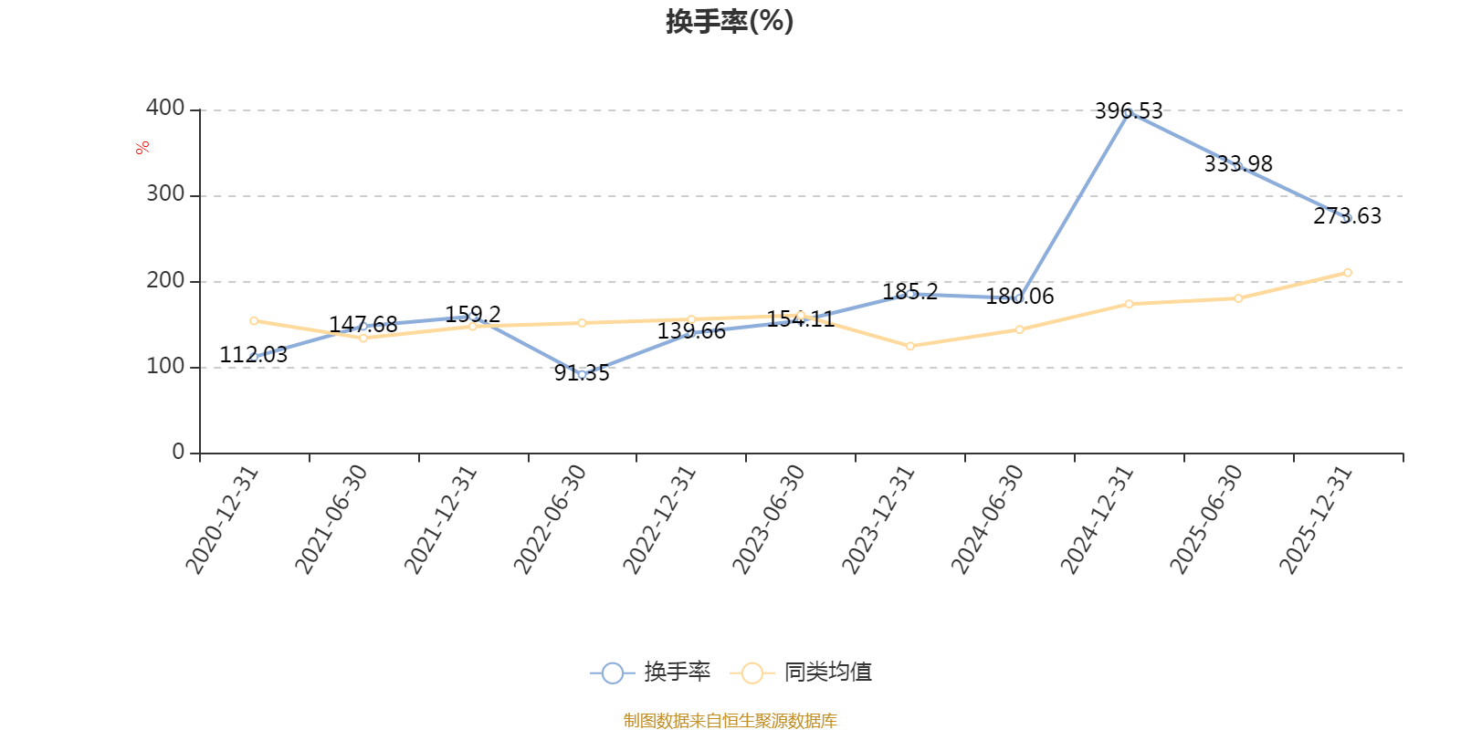 截至2025年12月31日,基金最近一年换手率约570.12%,持续2年高于同类均值。