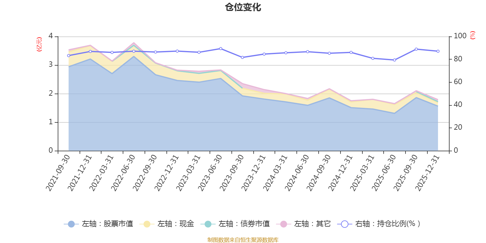 据定期报告数据统计,近三年平均股票仓位为85.15%,同类平均为87.15%。2023年上半年末基金达到89.37%的最高仓位,2025年上半年末最低,为79.42%。