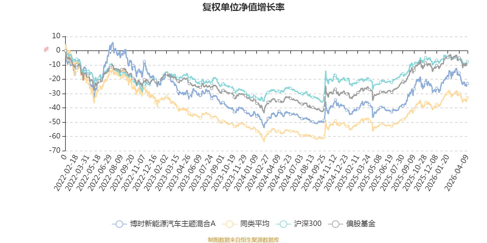 截至4月9日,博时新能源汽车主题混合A近三个月复权单位净值增长率为-3.93%,位于同类可比基金61/100;近半年复权单位净值增长率为-5.92%,位于同类可比基金74/100;近一年复权单位净值增长率为42.65%,位于同类可比基金51/99;近三年复权单位净值增长率为10.81%,位于同类可比基金43/76。