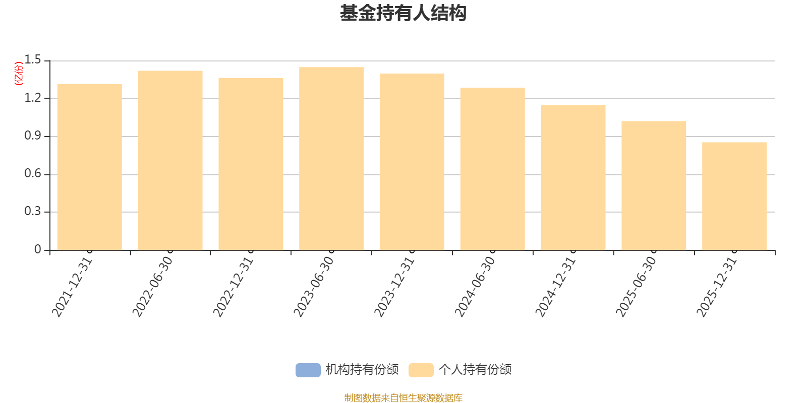 截至2025年12月31日,基金持有人共计4379户,合计持有8525.71万份。其中管理人员工持有161.57万份,占比1.90%,机构持有份额占比0.00%,个人投资者占比100.00%。