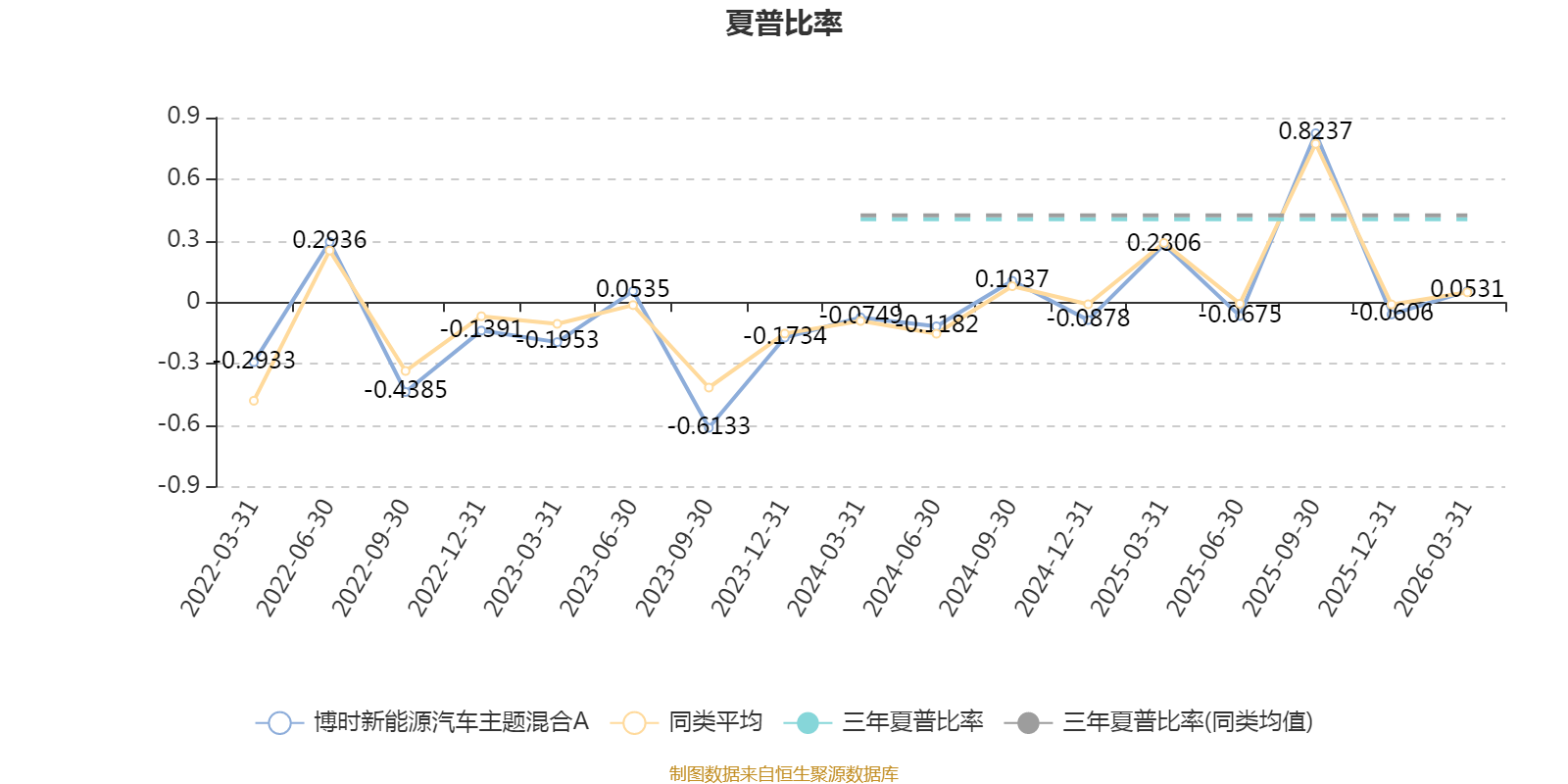 截至3月31日,基金近三年夏普比率为0.4036,位于同类可比基金46/72。