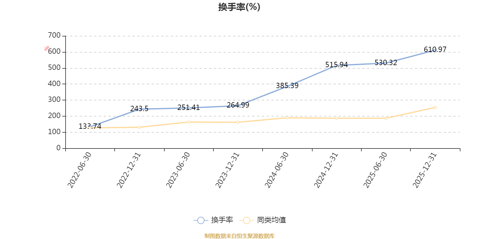 截至2025年12月31日,基金最近一年换手率约1116.48%,持续高于同类均值。