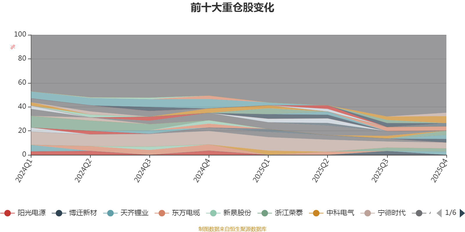 截至2025年末,基金十大重仓股分别是纳科诺尔、宁德时代、天赐材料、上海洗霸、中矿资源、多氟多、天际股份、天齐锂业、金盘科技、浙江荣泰。