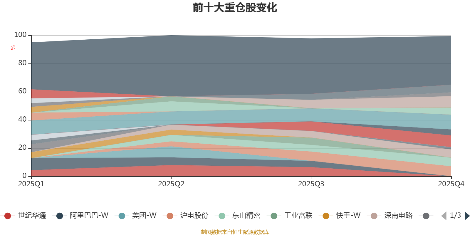 该基金持股集中度较高。截至2025年末,基金重仓股分别是腾讯控股、新易盛、中际旭创、沪电股份、东山精密、深南电路、紫金矿业、立讯精密、中国海洋石油、华虹公司、华虹半导体。