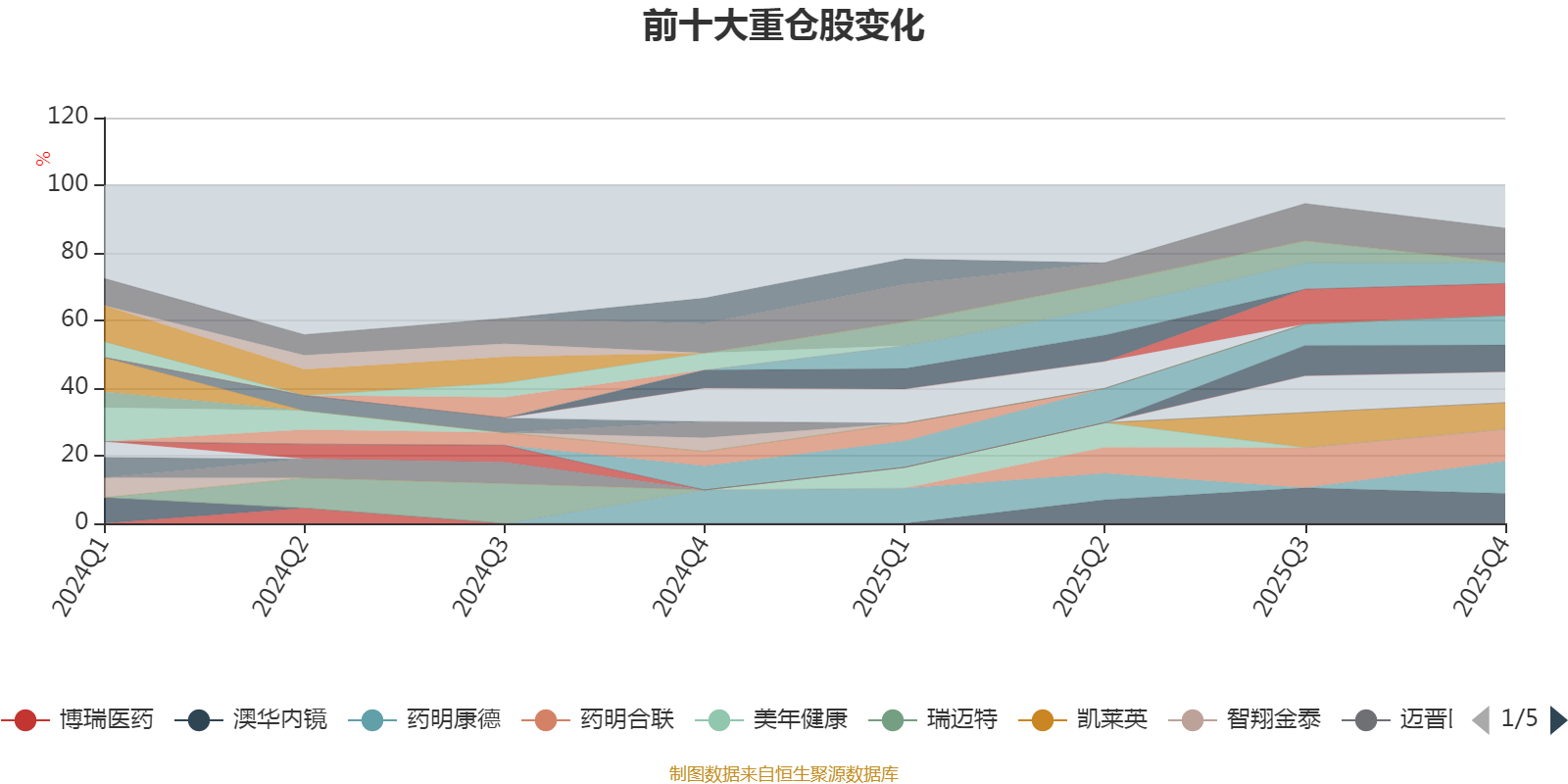 该基金持股集中度较高。截至2025年末,基金十大重仓股分别是恒瑞医药、药明康德、药明生物、药明合联、信达生物、澳华内镜、泰格医药、皓元医药、凯莱英、翰森制药。