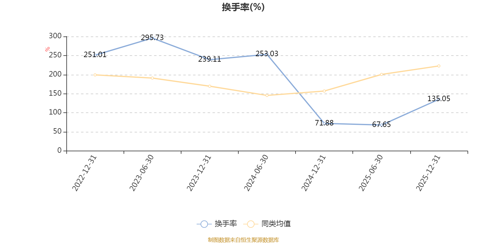 截至2025年12月31日,基金最近一年换手率约171.31%,持续1年低于同类均值。