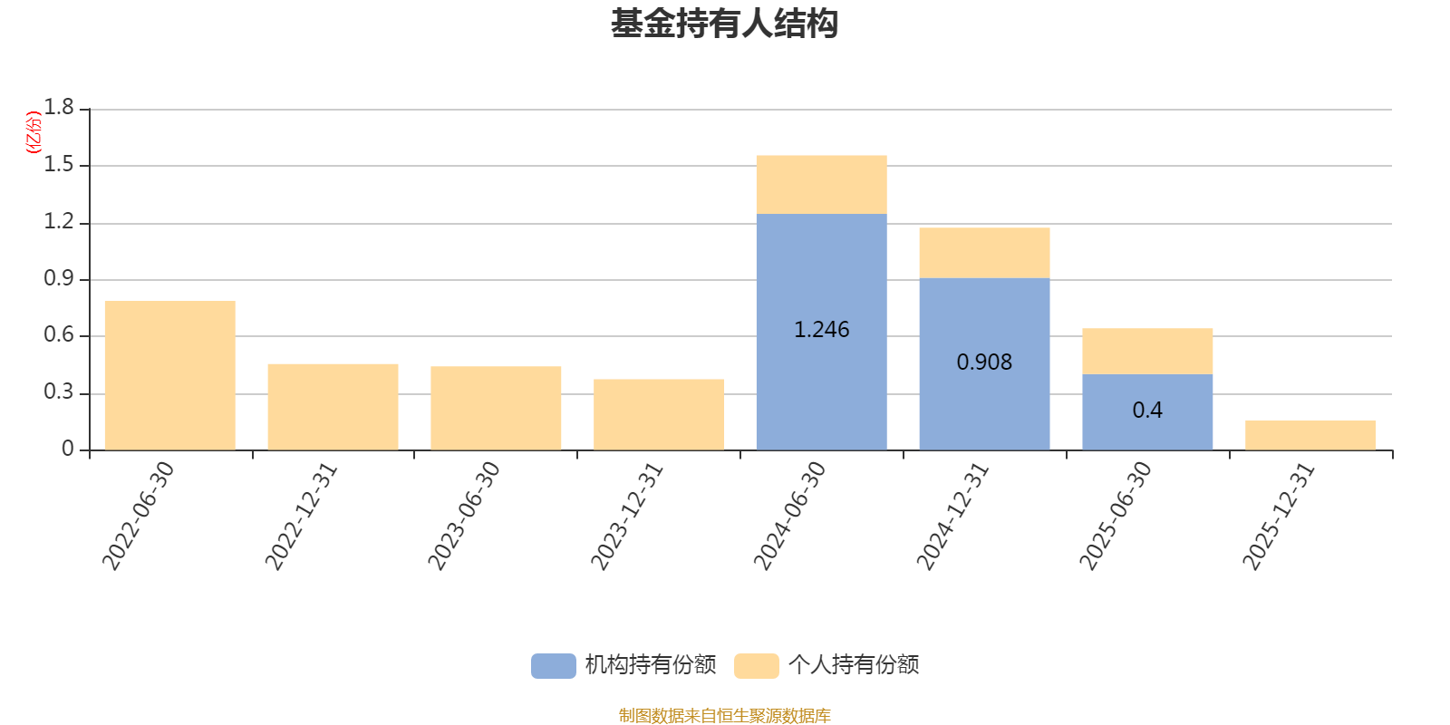 截至2025年12月31日,基金持有人共计1885户,合计持有1549.16万份。其中管理人员工持有7.19万份,占比0.46%,个人投资者占比100.00%。