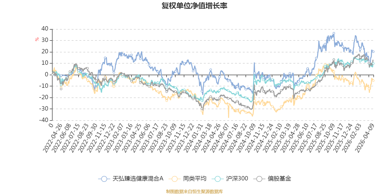 截至4月9日,天弘臻选健康混合A近三个月复权单位净值增长率为-8.18%,位于同类可比基金77/106;近半年复权单位净值增长率为-11.86%,位于同类可比基金83/106;近一年复权单位净值增长率为33.02%,位于同类可比基金38/104;近三年复权单位净值增长率为2.88%,位于同类可比基金29/78。