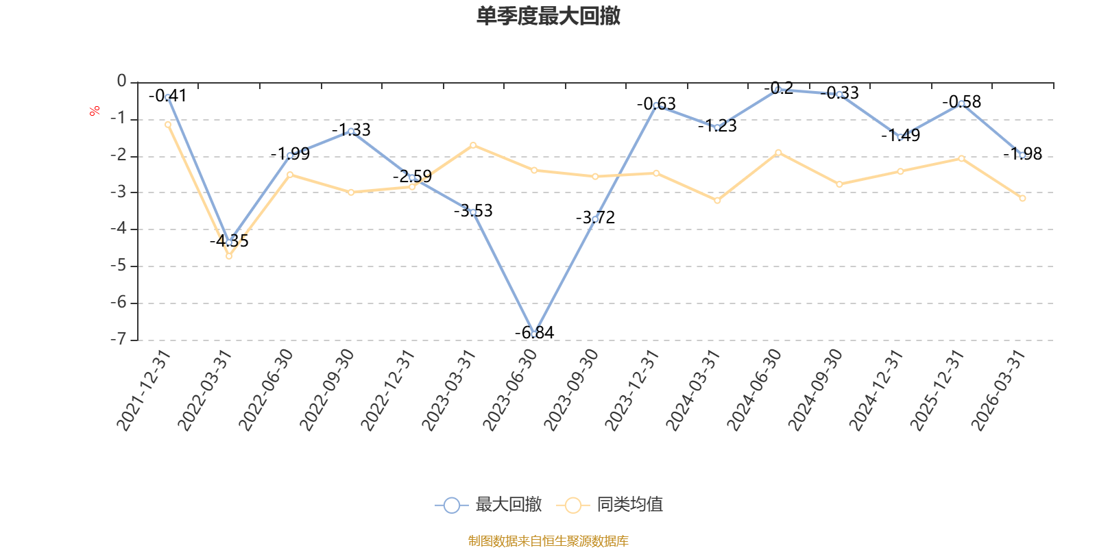 截至4月9日,基金近三年最大回撤为6.84%,同类可比基金排名323/562。单季度最大回撤出现在2023年二季度,为6.84%。