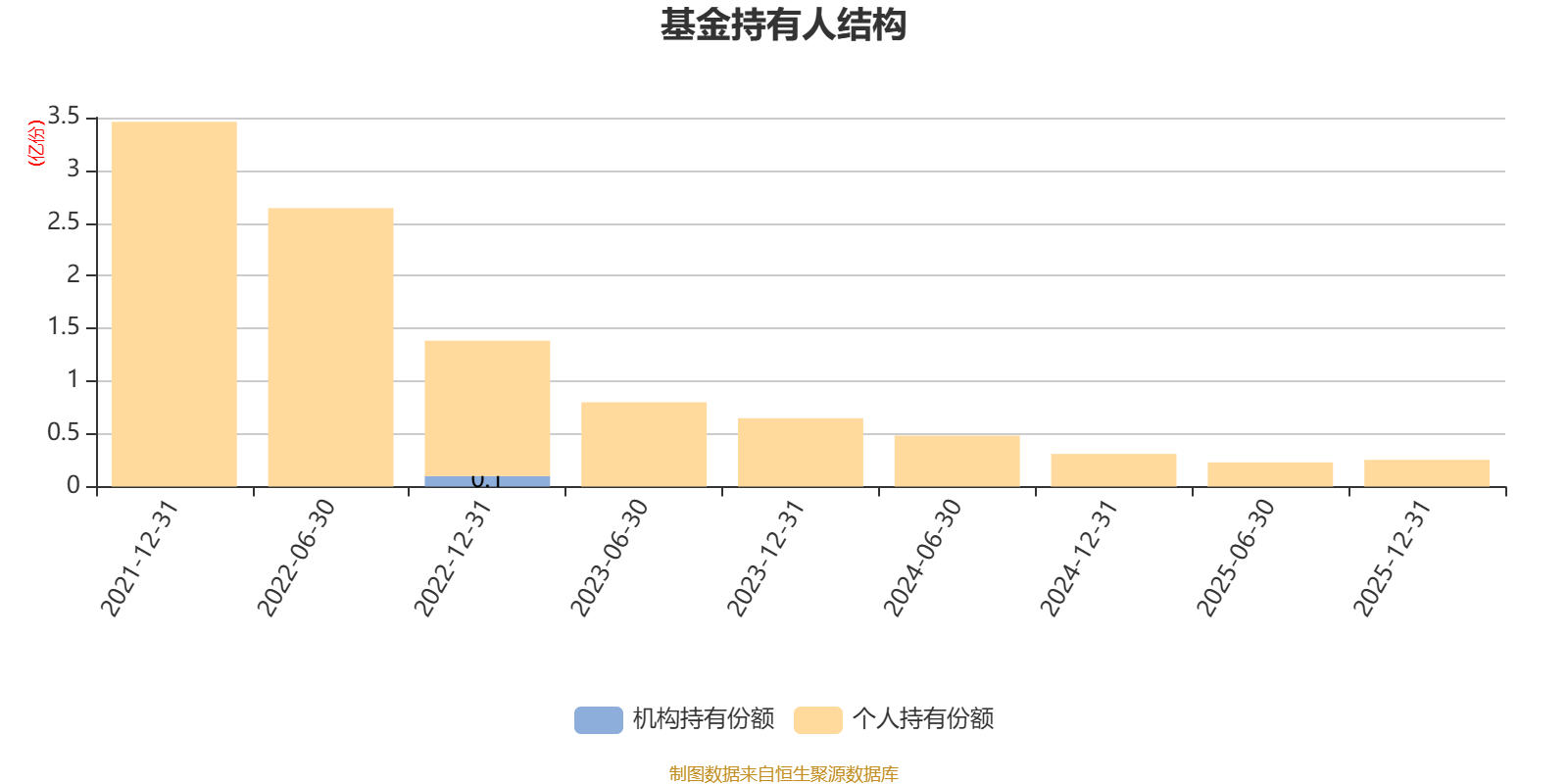 截至2025年12月31日,基金持有人共计719户,合计持有2536.62万份。其中管理人员工持有23.2万份,占比0.91%,个人投资者占比100.00%。