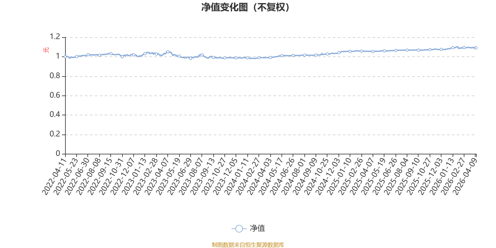 该基金属于偏债混合型基金。截至4月9日,单位净值为1.09元。基金经理是胡东,目前管理5只基金。其中,截至4月9日,天弘弘丰增强回报A近一年复权单位净值增长率最高,达21.75%;天弘惠享一年定开债券发起最低,为2.53%。
