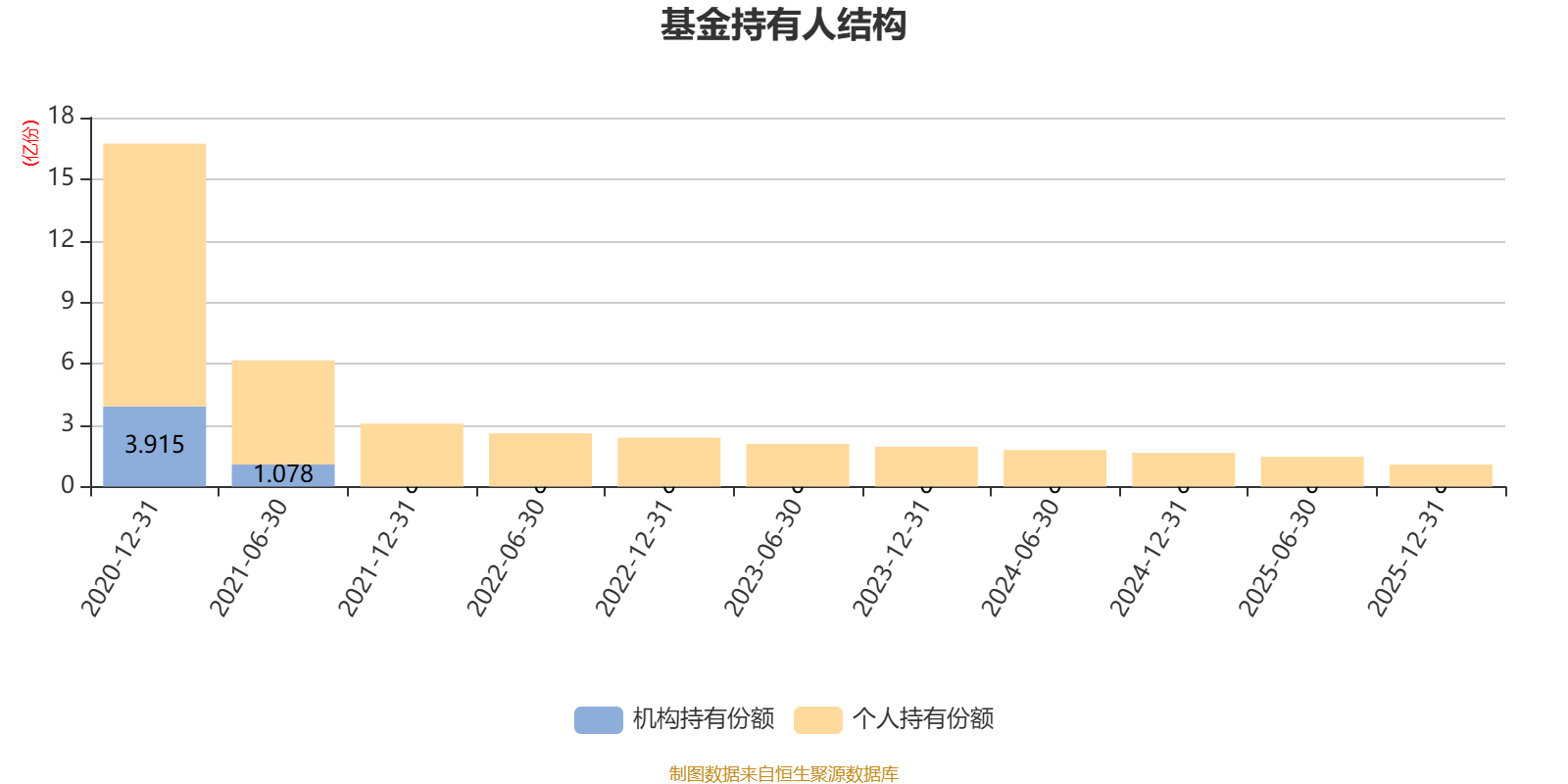 截至2025年12月31日,基金持有人共计1690户,合计持有1.07亿份。其中管理人员工持有38.44万份,占比0.36%,机构持有份额占比0.00%,个人投资者占比100.00%。