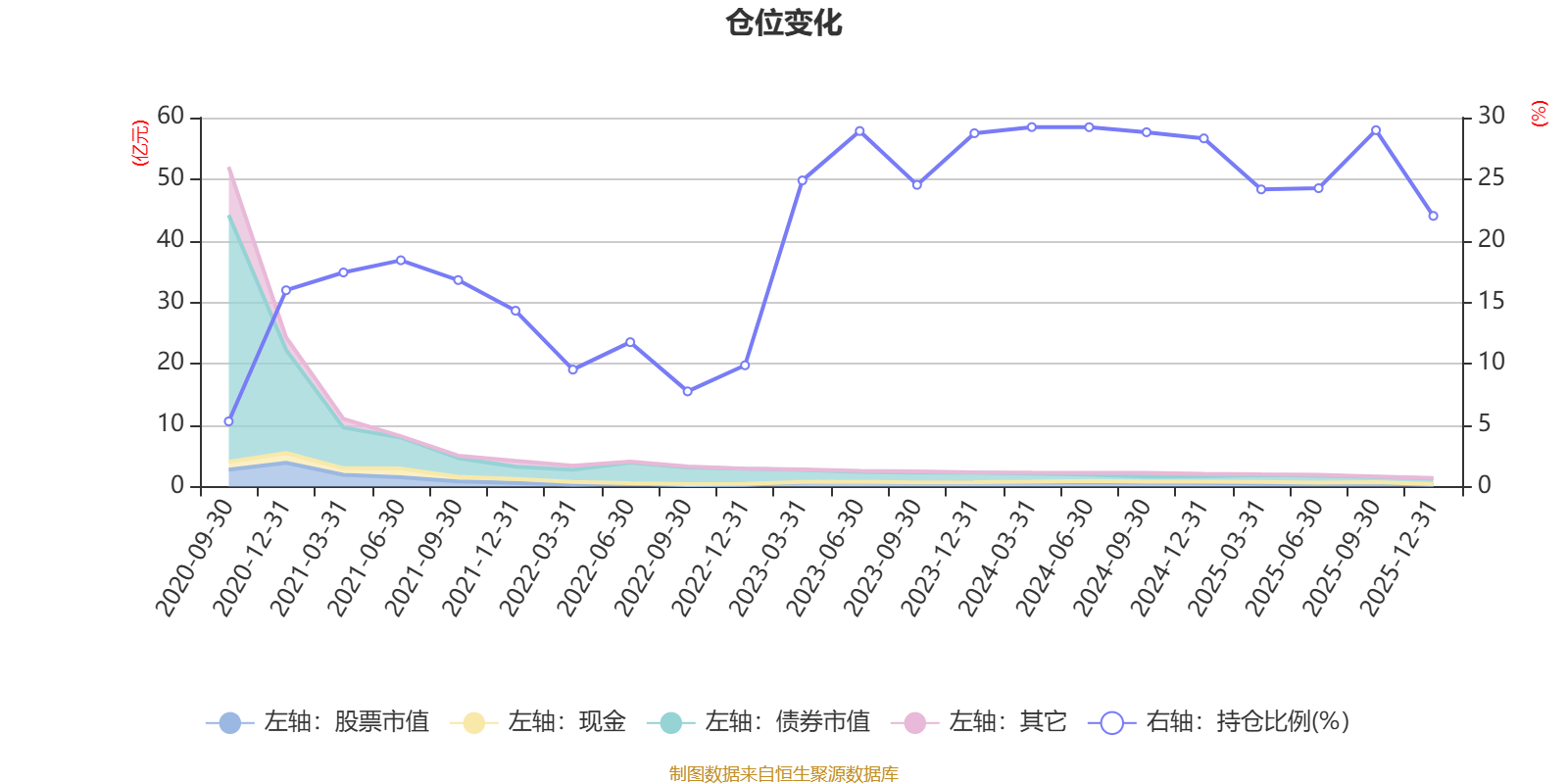 据定期报告数据统计,近三年平均股票仓位为26.84%,同类平均为19.2%。2024年一季度末基金达到29.23%的最高仓位,2020年三季度末最低,为5.3%。
