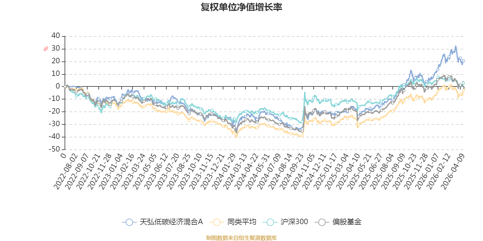 截至4月9日,天弘低碳经济混合A近三个月复权单位净值增长率为3.03%,位于同类可比基金173/689;近半年复权单位净值增长率为6.37%,位于同类可比基金212/689;近一年复权单位净值增长率为57.58%,位于同类可比基金148/685;近三年复权单位净值增长率为35.31%,位于同类可比基金87/417。
