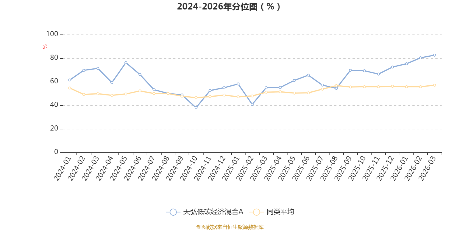 通过所选区间该基金净值增长率分位图,可以观察该基金与同类基金业绩比较情况。图为坐标原点到区间内某时点的净值增长率在同类基金中的分位数。