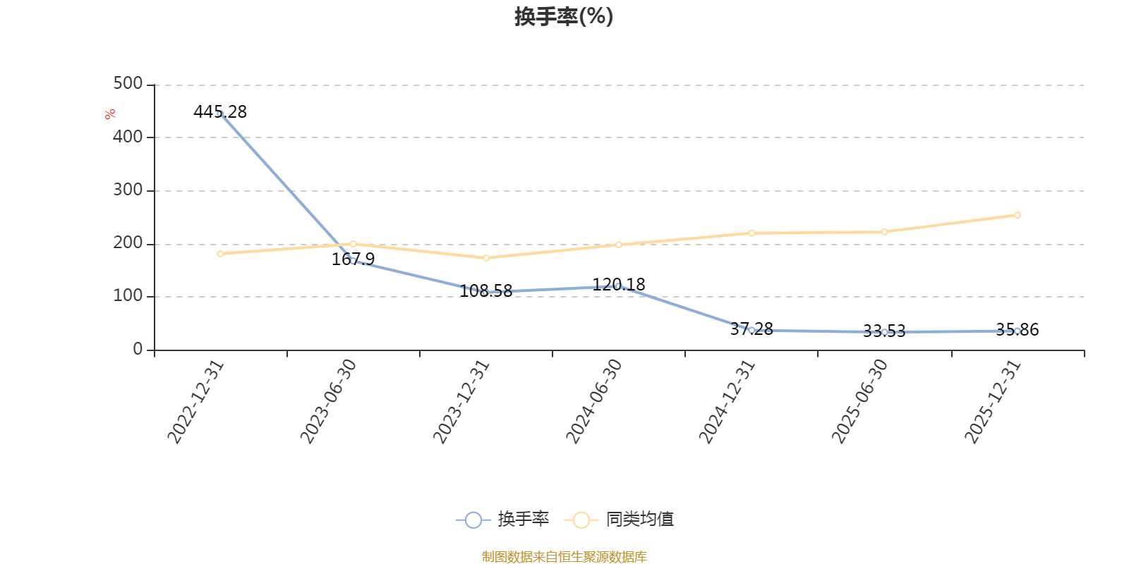截至2025年12月31日,基金最近一年换手率约68.77%,持续3年低于同类均值。