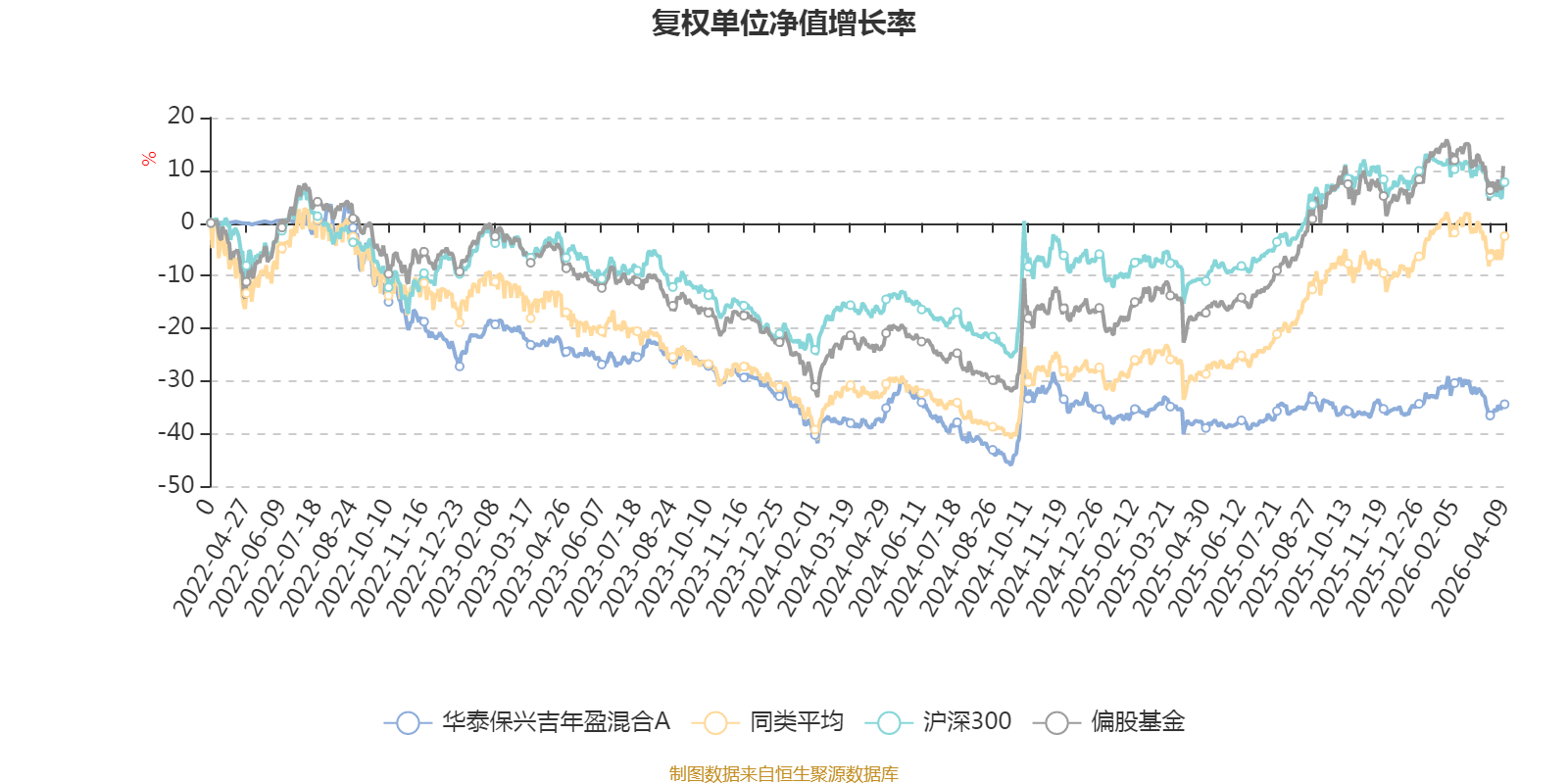 截至4月9日,华泰保兴吉年盈混合A近三个月复权单位净值增长率为-2.09%,位于同类可比基金352/621;近半年复权单位净值增长率为0.95%,位于同类可比基金308/621;近一年复权单位净值增长率为6.13%,位于同类可比基金589/618;近三年复权单位净值增长率为-15.39%,位于同类可比基金515/559。