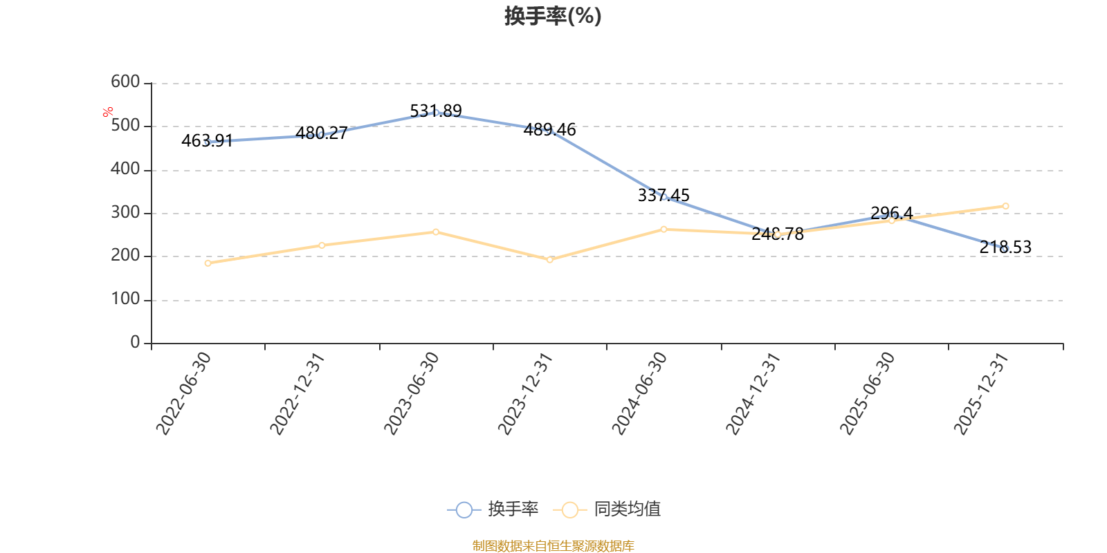 截至2025年12月31日,基金最近一年换手率约531.58%。