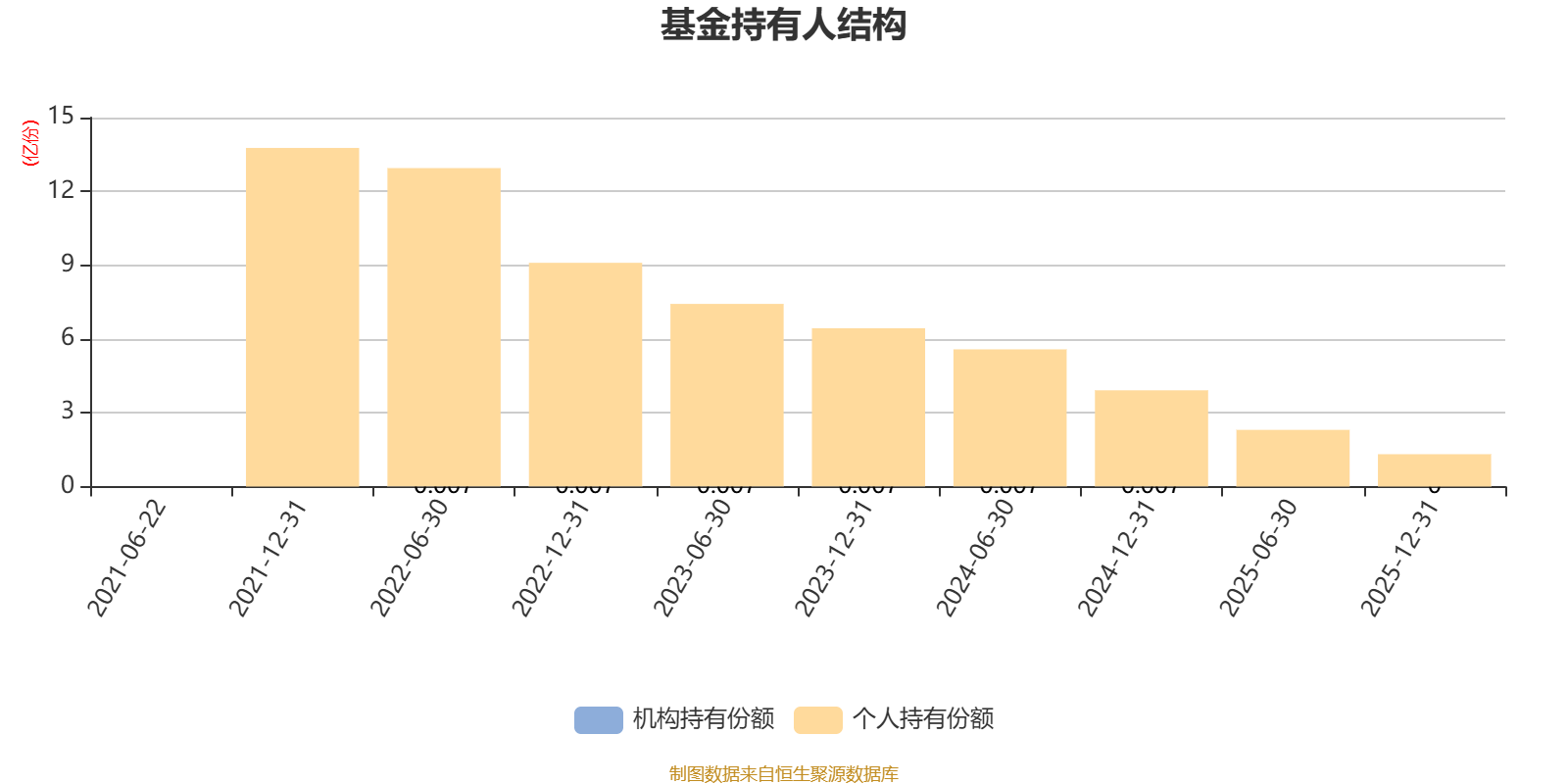 截至2025年12月31日,基金持有人共计1631户,合计持有1.32亿份。其中管理人员工持有1.89万份,占比0.01%,机构持有份额占比0.00%,个人投资者占比100.00%。
