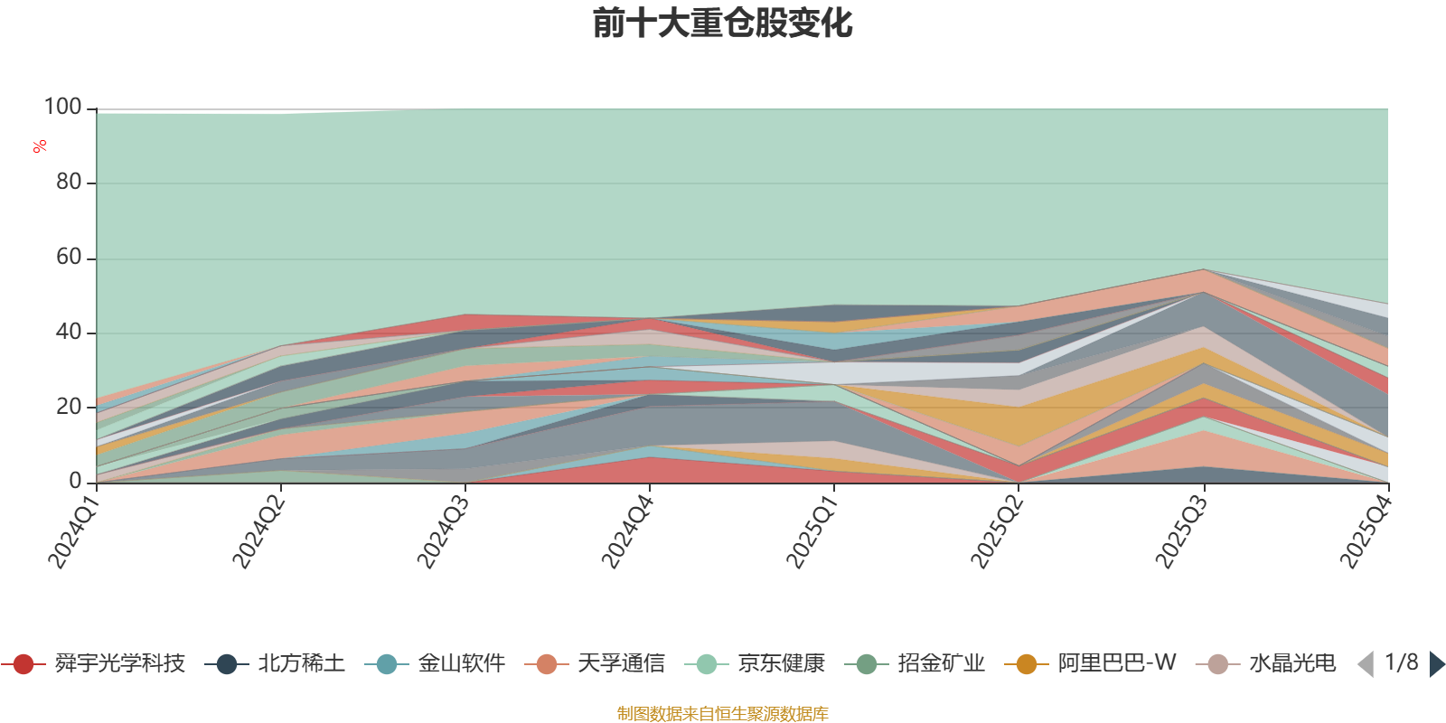 截至2025年末,基金十大重仓股分别是深南电路、胜宏科技、长芯博创、思源电气、伊戈尔、洛阳钼业、紫金矿业、源杰科技、商汤-W、东微半导。