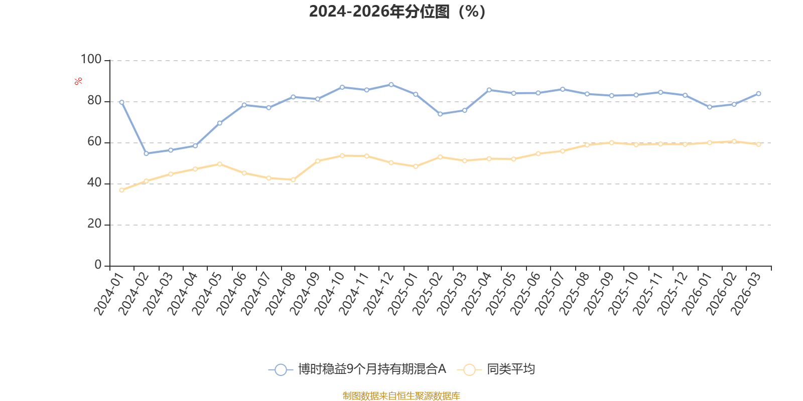 通过所选区间该基金净值增长率分位图,可以观察该基金与同类基金业绩比较情况。图为坐标原点到区间内某时点的净值增长率在同类基金中的分位数。