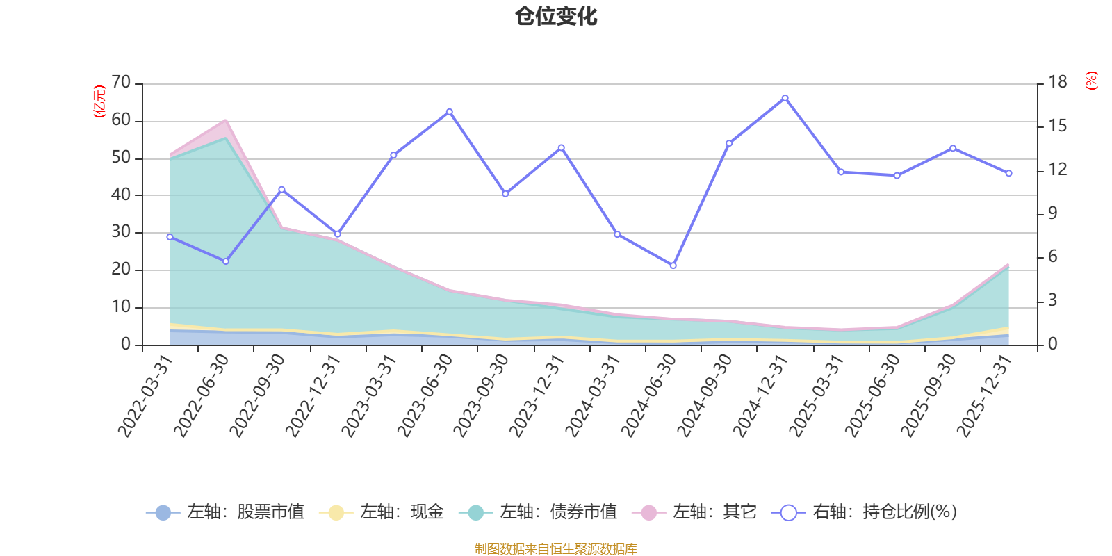 据定期报告数据统计,近三年平均股票仓位为12.17%,同类平均为19.2%。2024年末基金达到17%的最高仓位,2024年上半年末最低,为5.47%。