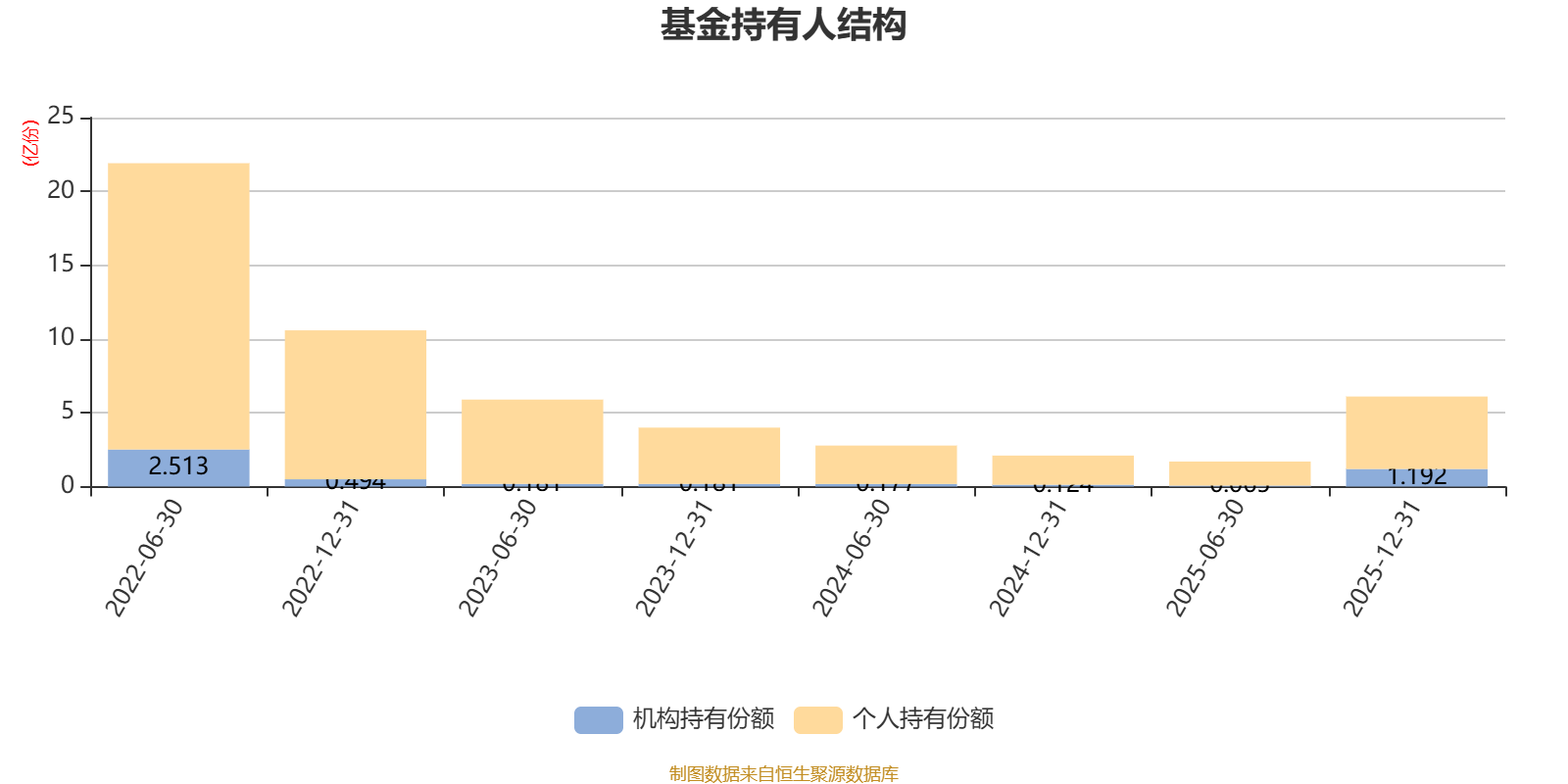 截至2025年12月31日,基金持有人共计8361户,合计持有6.1亿份。其中管理人员工持有48.2万份,占比0.08%,机构持有份额占比19.54%,个人投资者占比80.46%。