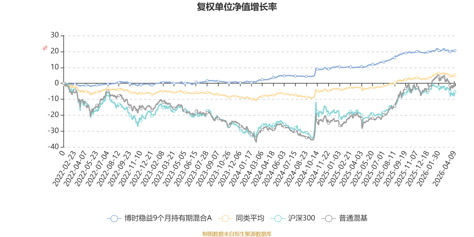 截至4月9日,博时稳益9个月持有期混合A近三个月复权单位净值增长率为0.31%,位于同类可比基金280/629;近半年复权单位净值增长率为0.54%,位于同类可比基金388/629;近一年复权单位净值增长率为9.64%,位于同类可比基金197/629;近三年复权单位净值增长率为20.12%,位于同类可比基金69/581。