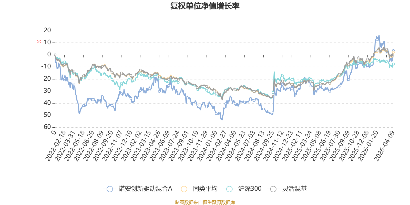 截至4月9日,诺安创新驱动混合A近三个月复权单位净值增长率为-0.77%,位于同类可比基金666/1287;近半年复权单位净值增长率为6.58%,位于同类可比基金350/1286;近一年复权单位净值增长率为51.69%,位于同类可比基金347/1286;近三年复权单位净值增长率为27.22%,位于同类可比基金373/1286。