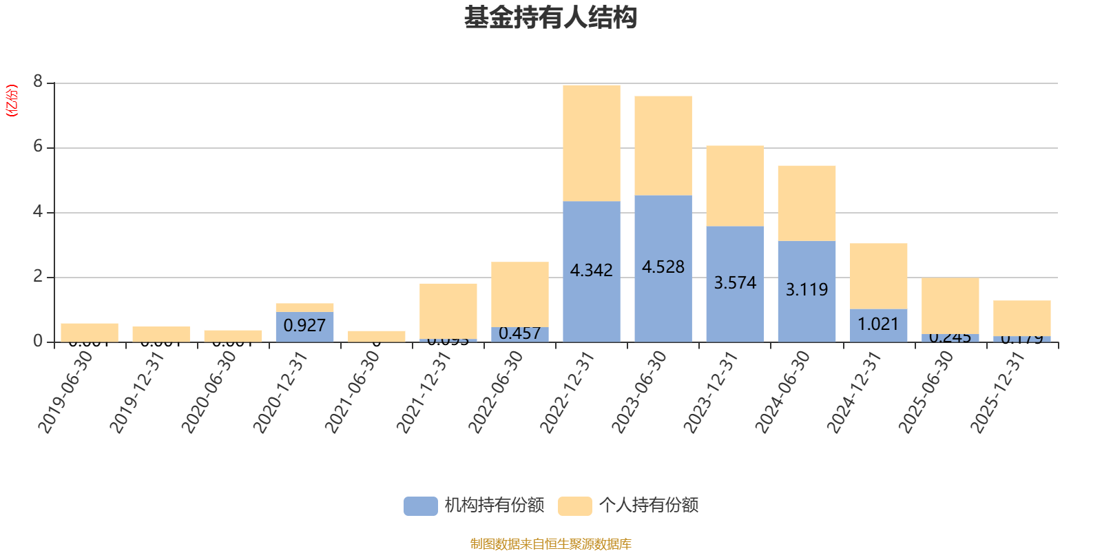 截至2025年12月31日,基金持有人共计7769户,合计持有1.28亿份。其中管理人员工持有60.9万份,占比0.48%,机构持有份额占比14.02%,个人投资者占比85.98%。