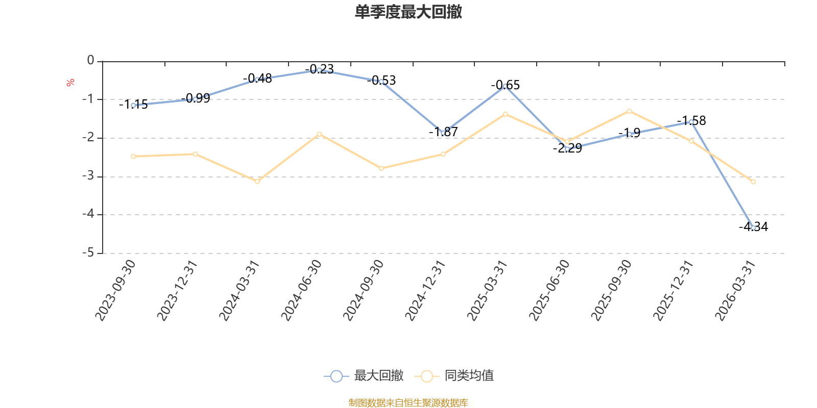 截至4月10日,基金近三年最大回撤为4.34%,同类可比基金排名162/549。单季度最大回撤出现在2026年一季度,为4.34%。