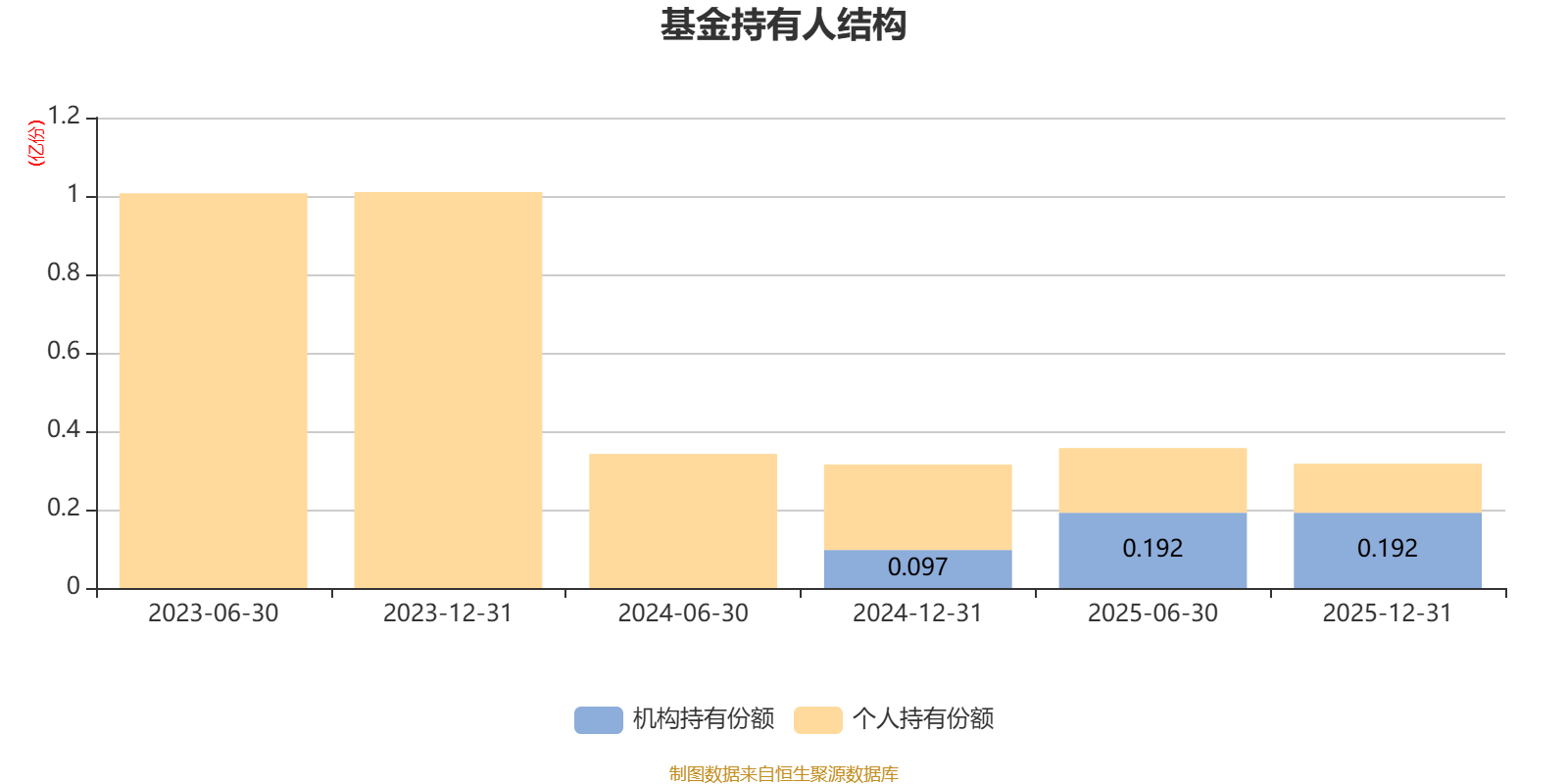 截至2025年12月31日,基金持有人共计406户,合计持有3174.79万份。机构持有份额占比60.63%,个人投资者占比39.37%。