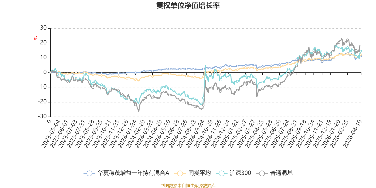 截至4月10日,华夏稳茂增益一年持有混合A近三个月复权单位净值增长率为-0.12%,位于同类可比基金411/629;近半年复权单位净值增长率为2.42%,位于同类可比基金199/629;近一年复权单位净值增长率为7.58%,位于同类可比基金281/629;近三年复权单位净值增长率为11.21%,位于同类可比基金285/581。
