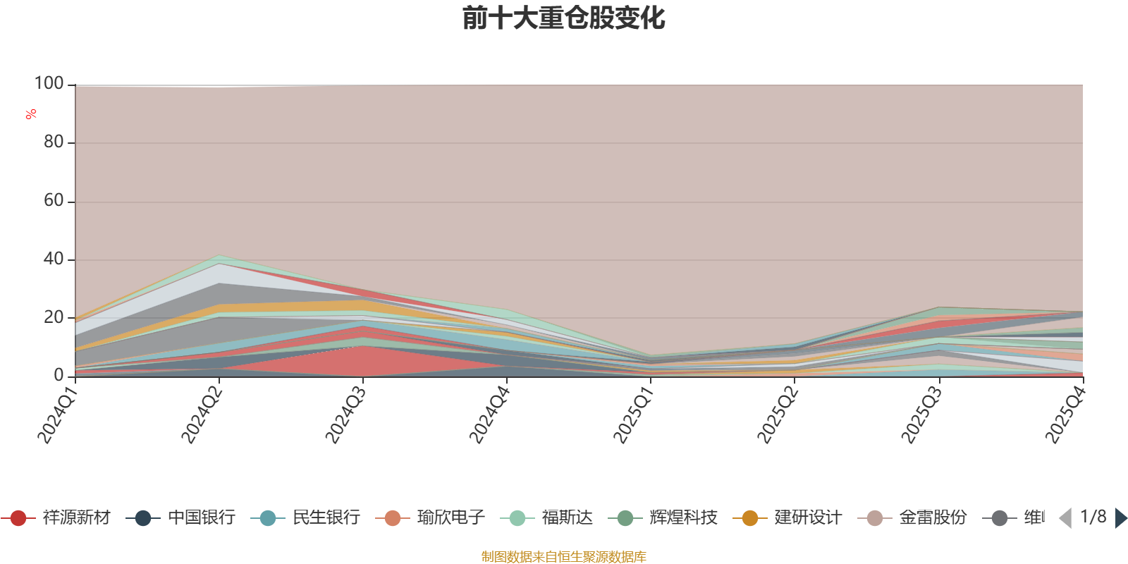 截至2025年末,基金十大重仓股分别是聚胶股份、乔锋智能、天地数码、英搏尔、申万宏源、洁雅股份、兔宝宝、百普赛斯、行动教育、祥源新材。