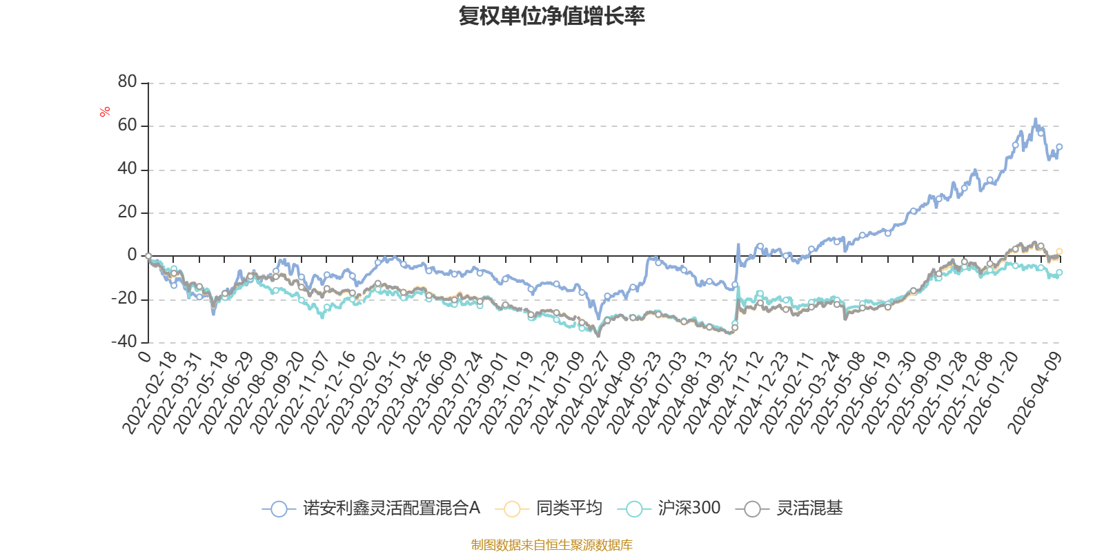 截至4月9日,诺安利鑫灵活配置混合A近三个月复权单位净值增长率为2.93%,位于同类可比基金278/1287;近半年复权单位净值增长率为12.27%,位于同类可比基金183/1286;近一年复权单位净值增长率为46.01%,位于同类可比基金425/1286;近三年复权单位净值增长率为57.78%,位于同类可比基金106/1286。