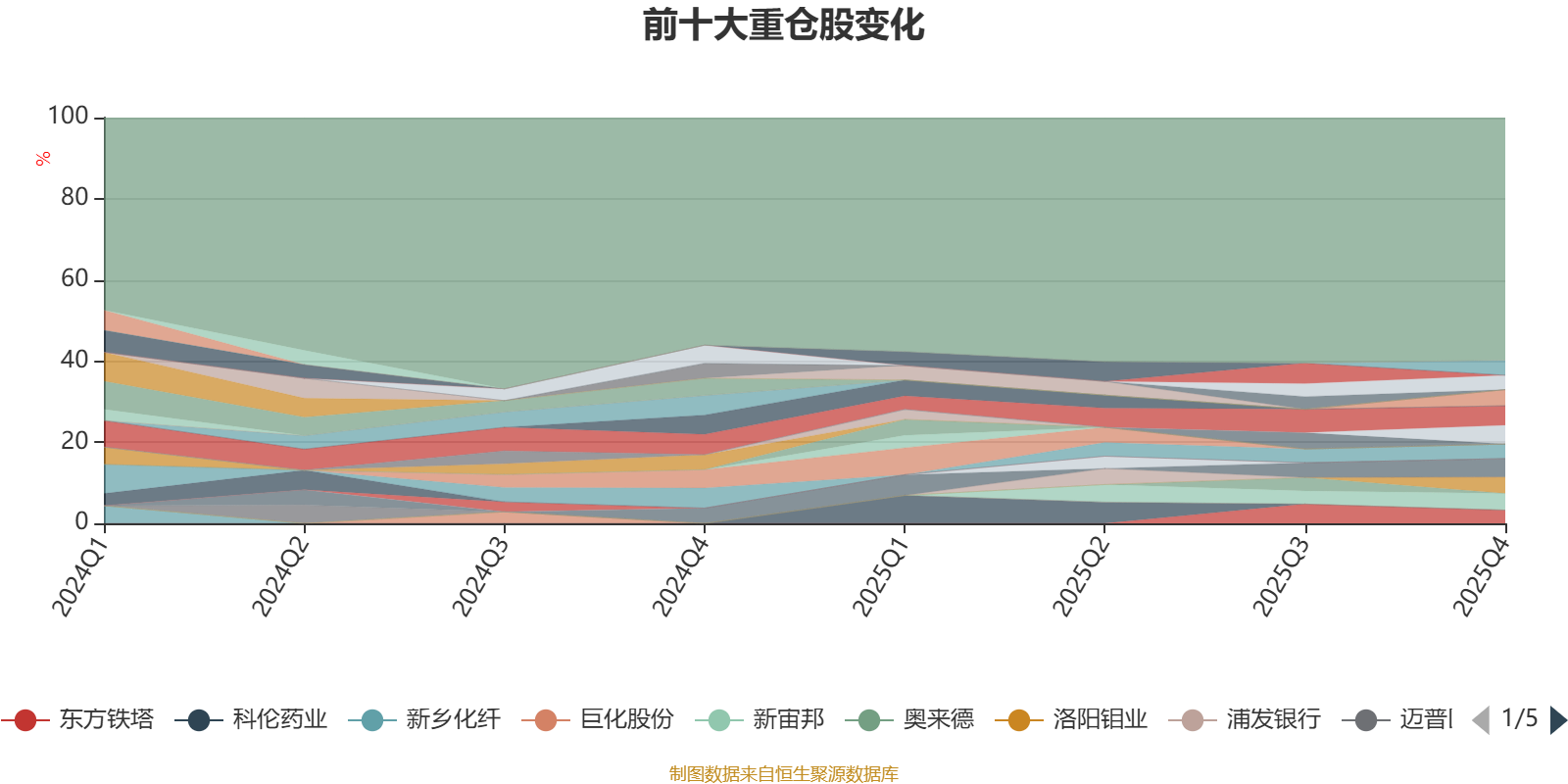 截至2025年末,基金十大重仓股分别是皇马科技、亚钾国际、川恒股份、新宙邦、洛阳钼业、中国石化、新华保险、赛轮轮胎、云天化、东方铁塔。