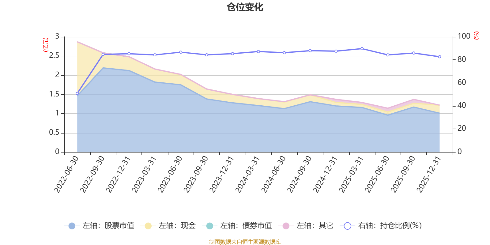 据定期报告数据统计,近三年平均股票仓位为85.99%,同类平均为87.15%。2025年一季度末基金达到89.68%的最高仓位,2022年上半年末最低,为50.82%。