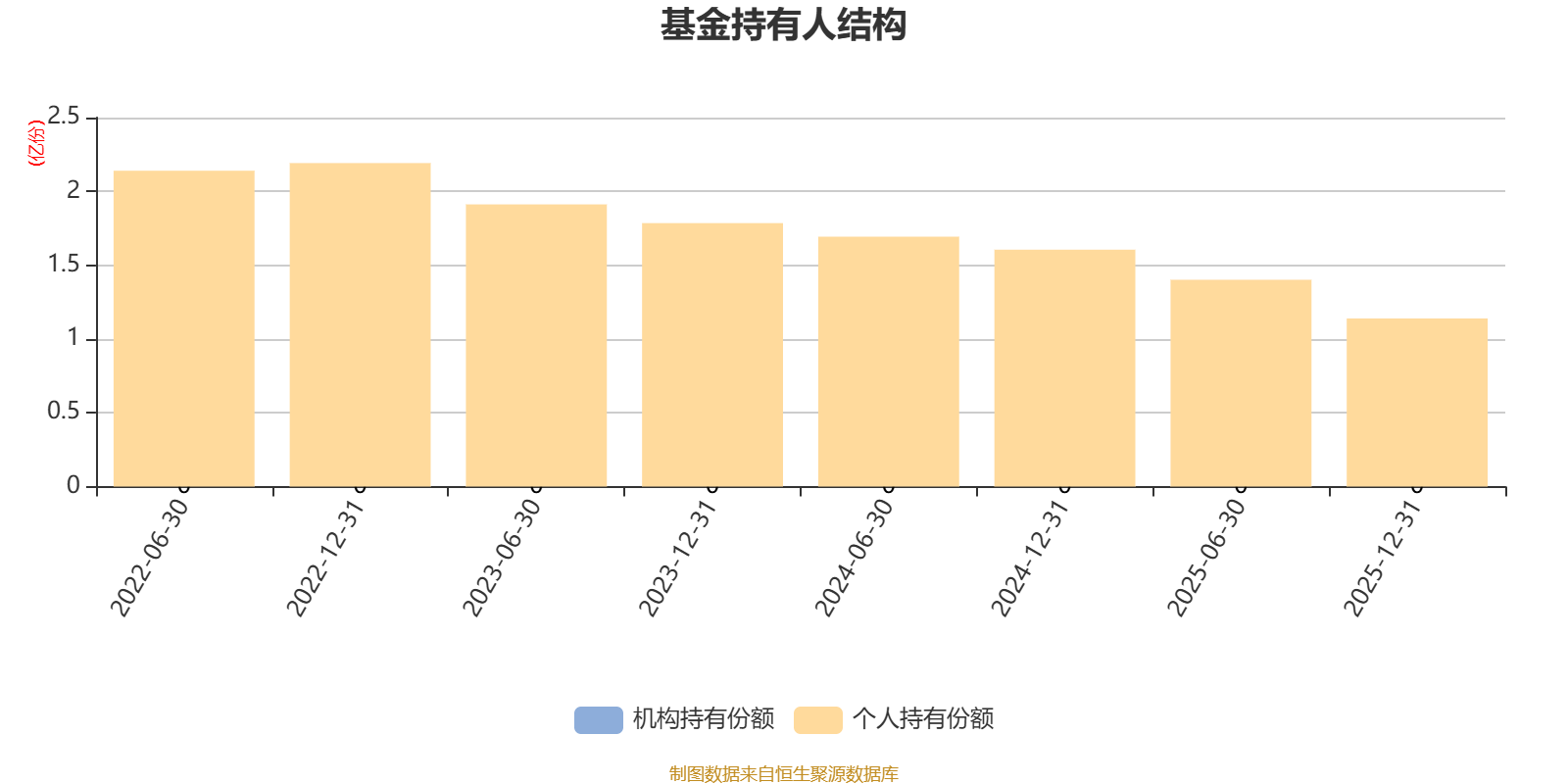截至2025年12月31日,基金持有人共计2123户,合计持有1.14亿份。其中管理人员工持有59.3万份,占比0.52%,机构持有份额占比0.00%,个人投资者占比100.00%。