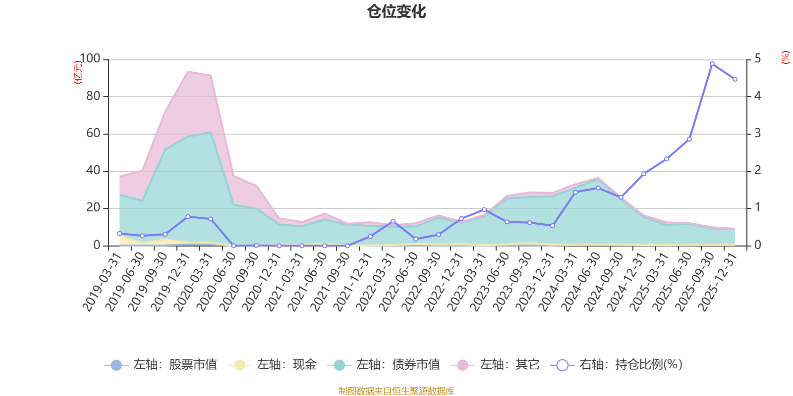 据定期报告数据统计,近三年平均股票仓位为1.96%,同类平均为19.2%。2025年三季度末基金达到4.88%的最高仓位,2020年上半年末最低,为0%。
