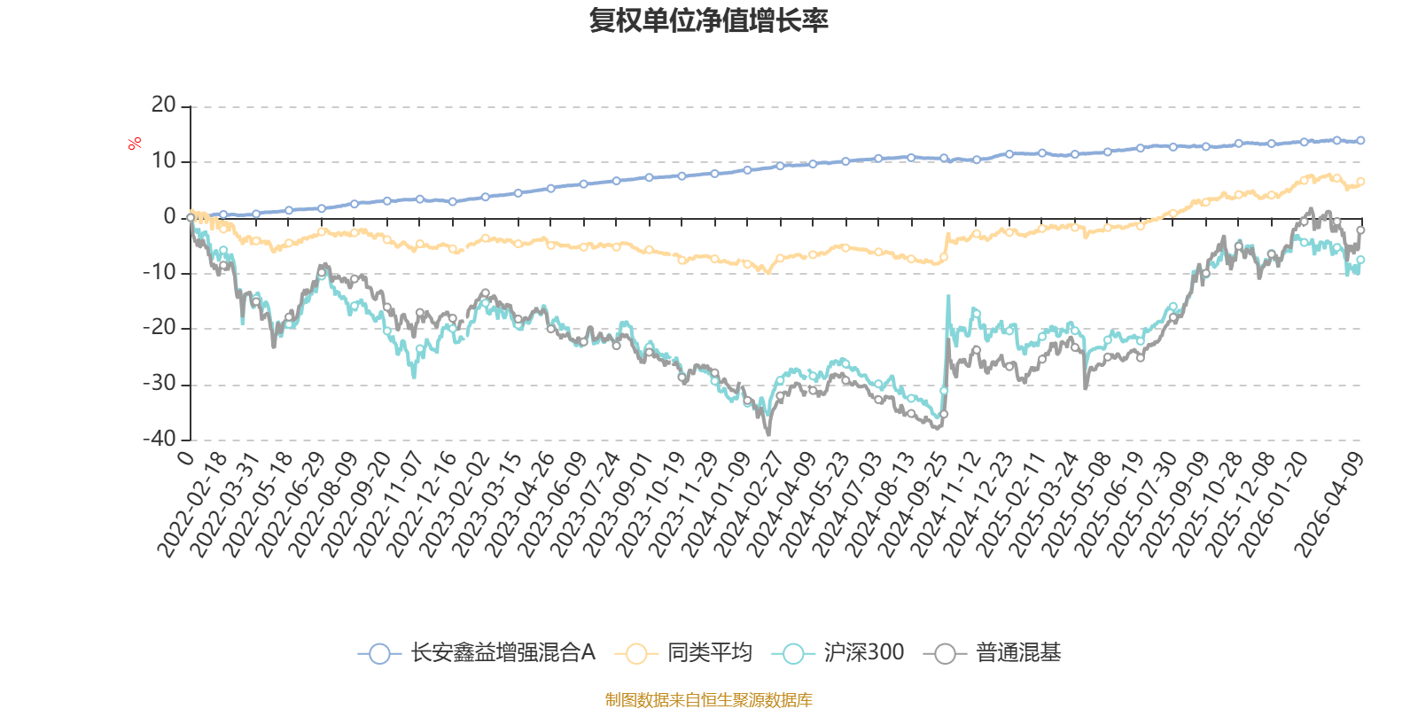 截至4月9日,长安鑫益增强混合A近三个月复权单位净值增长率为0.27%,位于同类可比基金290/629;近半年复权单位净值增长率为0.84%,位于同类可比基金340/629;近一年复权单位净值增长率为2.11%,位于同类可比基金588/629;近三年复权单位净值增长率为8.62%,位于同类可比基金365/581。