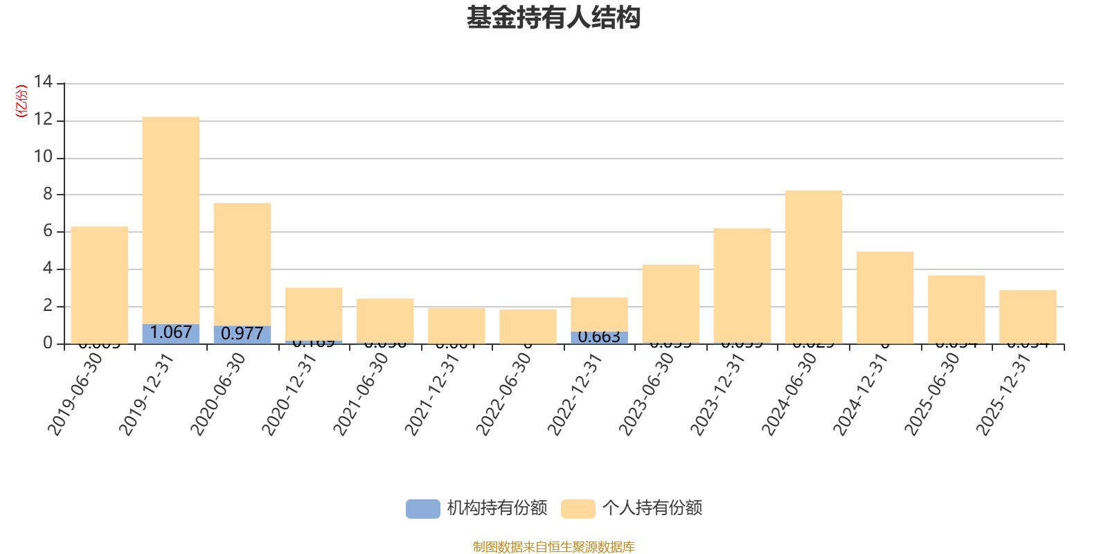 截至2025年12月31日,基金持有人共计2.19万户,合计持有2.89亿份。其中管理人员工持有2595.65份,机构持有份额占比1.17%,个人投资者占比98.83%。