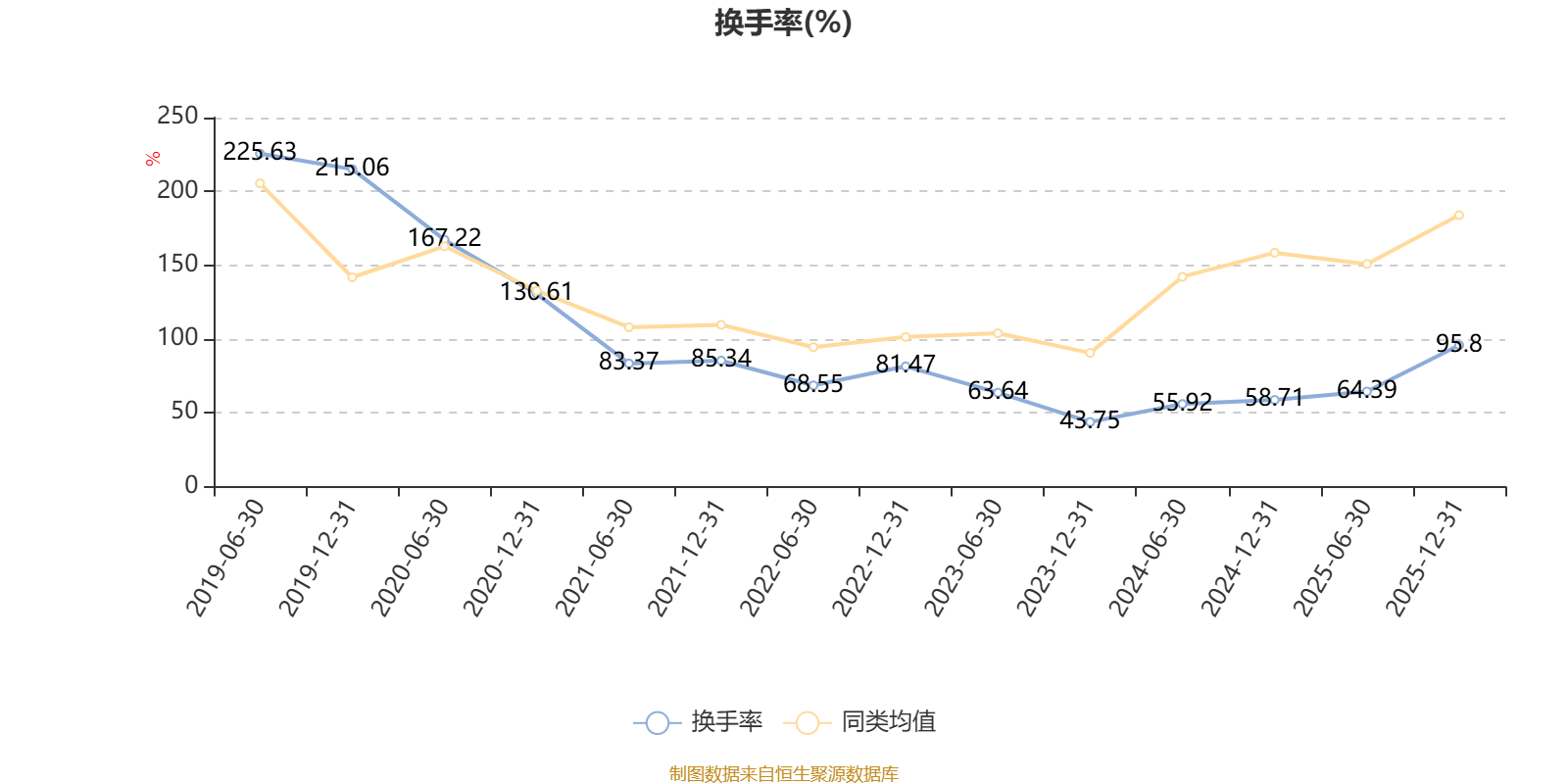 截至2025年12月31日,基金最近一年换手率约162.19%,持续5年低于同类均值。