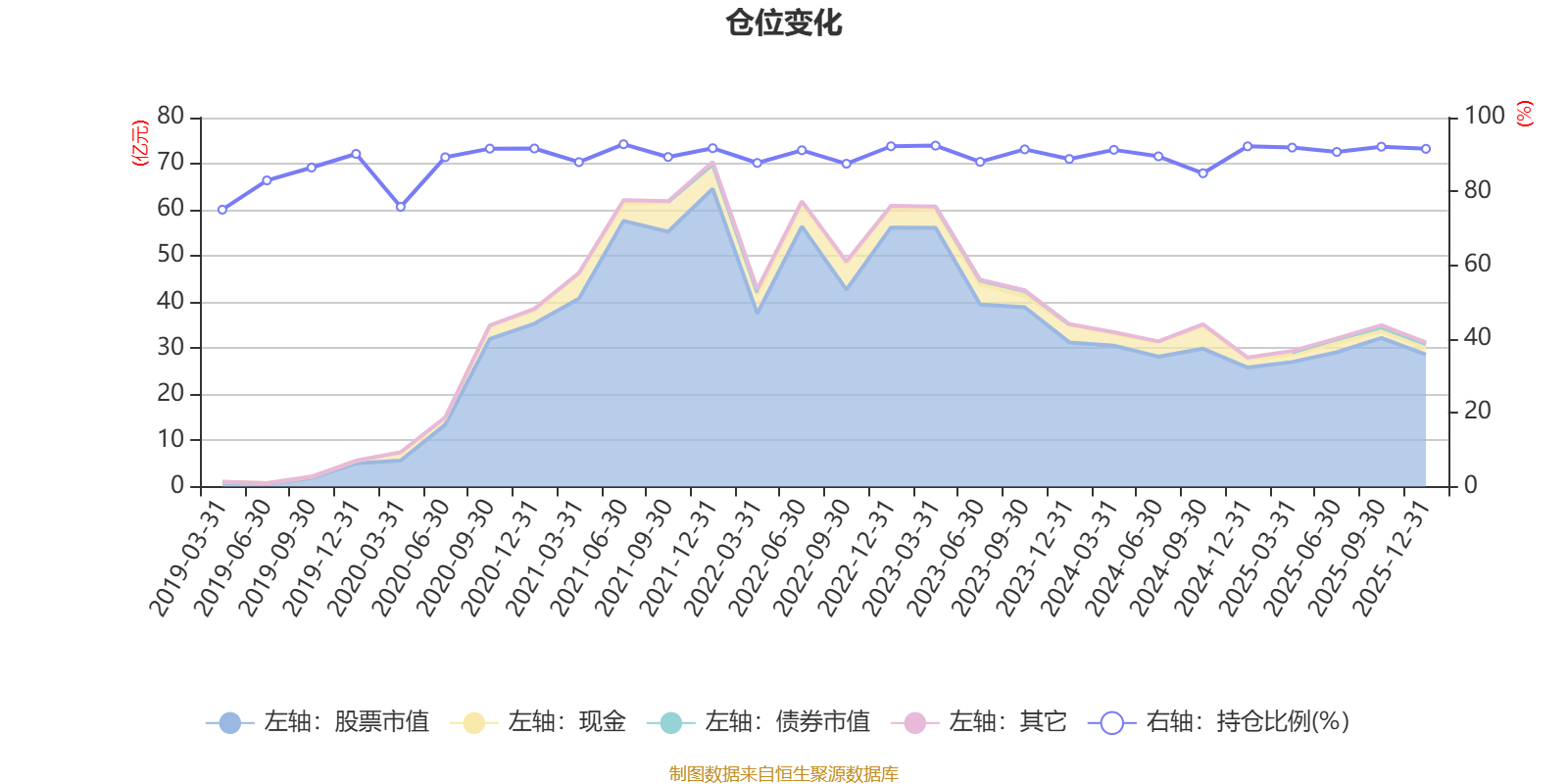 据定期报告数据统计,近三年平均股票仓位为90.39%,同类平均为87.26%。2021年上半年末基金达到92.78%的最高仓位,2019年一季度末最低,为75.05%。