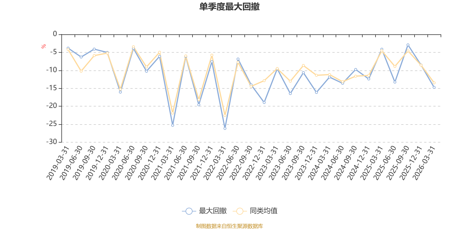 截至4月9日,基金近三年最大回撤为34.45%,同类可比基金排名41/75。单季度最大回撤出现在2022年一季度,为26.18%。