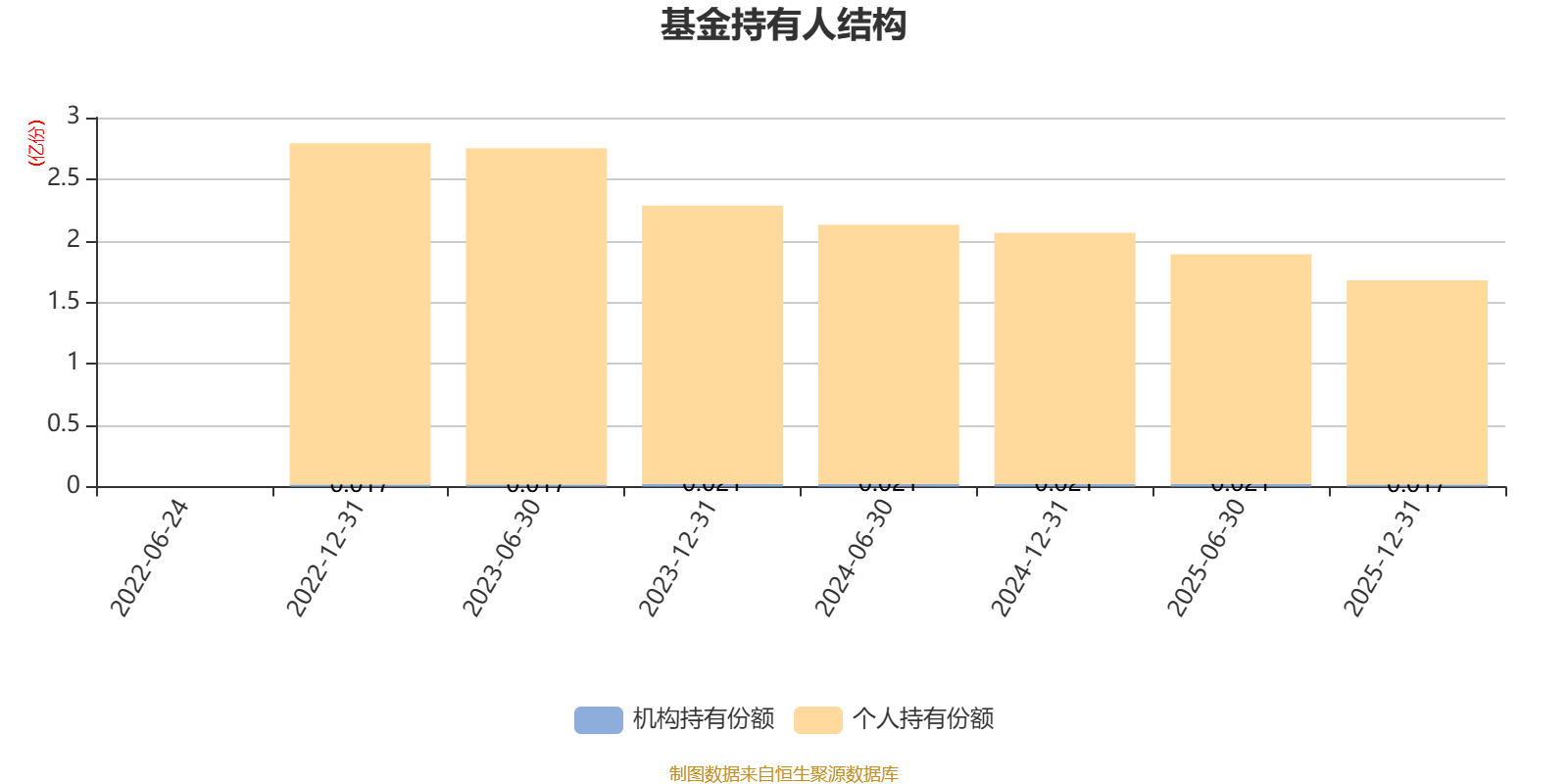 截至2025年12月31日,基金持有人共计4025户,合计持有1.68亿份。其中管理人员工持有140.42万份,占比0.84%,机构持有份额占比1.01%,个人投资者占比98.99%。