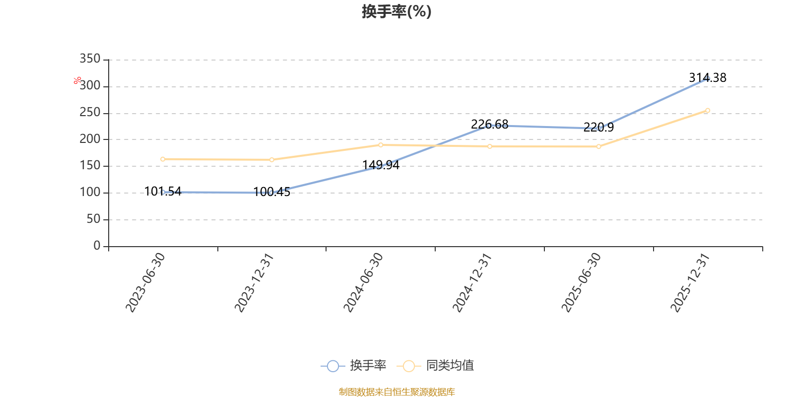 截至2025年12月31日,基金最近一年换手率约535.95%,持续1年高于同类均值。